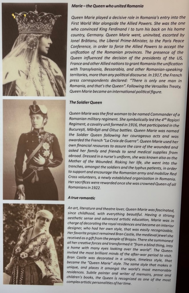 Marie Alexandra Victoria of Saxe-Coburg and Gotha was born on October 29th, 1875, and spent her childhood years at Eastwell Park in Kent. She was the granddaughter of Queen Victoria of Great Britain and of Alexander Il of the Romanov dynasty, Tsar of Russia. In 1893, she married Prince Ferdinand I of Romania at 18 years of age. Her first born son became the first Christian Orthodox king of Romania, King Carol II. At the end of the First World War, on October 15, 1922, she became Queen of Greater Romania, crowned in the cathedral in Alba-lulia. The Queen’s crown was inspired by Romanian medieval princesses’ crowns, and was made, symbolically, of Transylvanian gold. Marie, Queen of all Romanians, died on July 18th, 1938, passing from her people’s hearts into a legend.