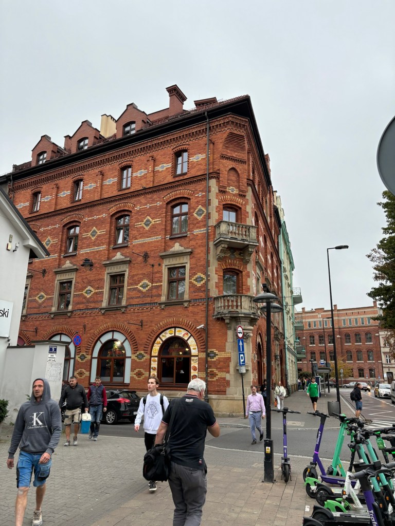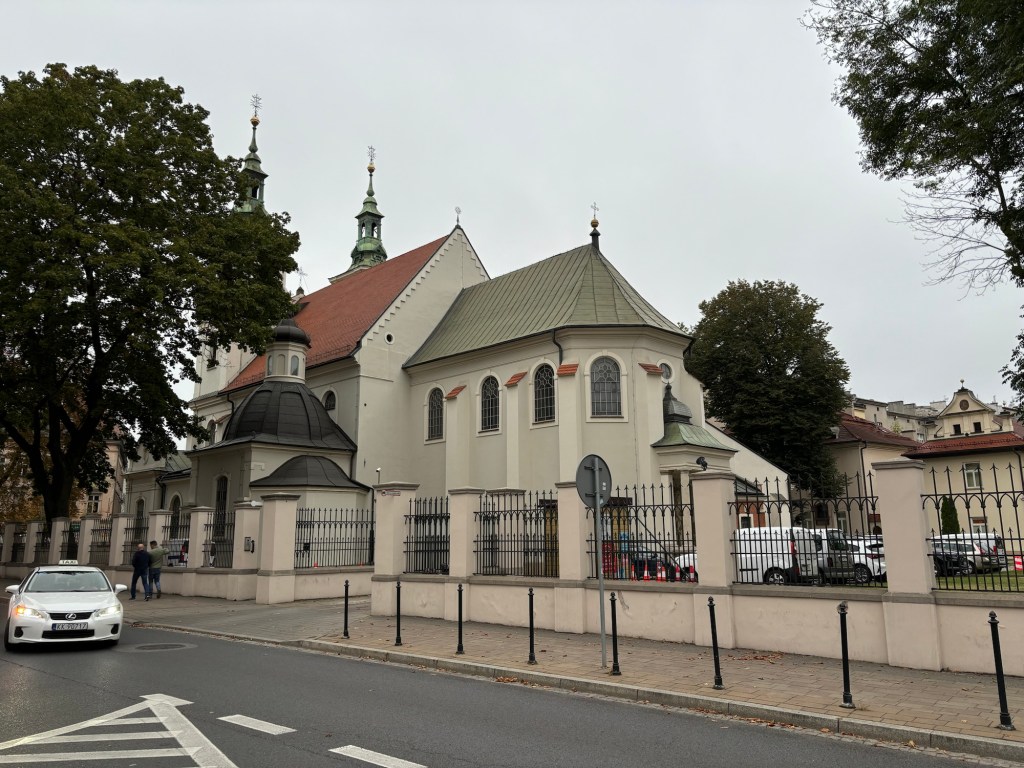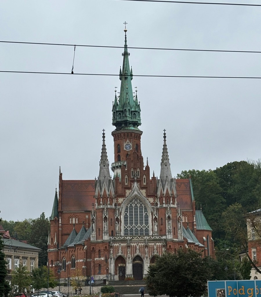 Pierogi with meat, some chilled cabbage salad, and a Polish beer.One of the almost 150 churches in Krakow