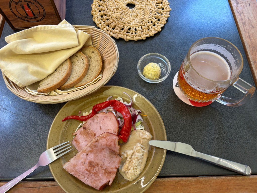 “Smažený sýr, tatarka a hranolky” (think the Czech language might be difficult?)My lunch cafeMe after my fried cheese and beer!