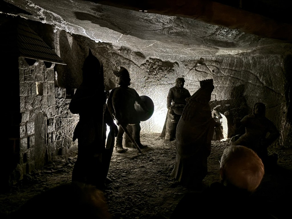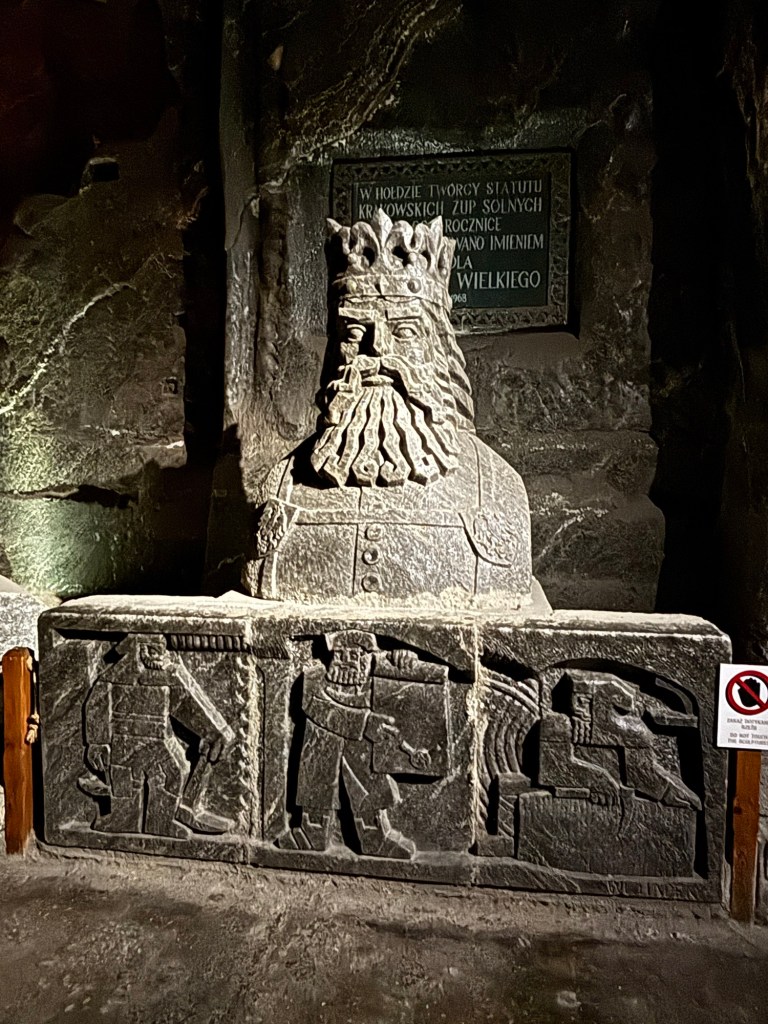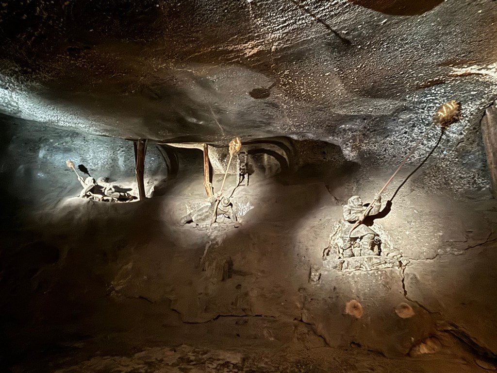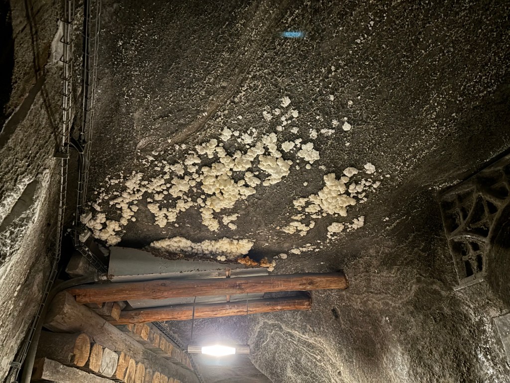 The gray walls and ceiling in all the photos is raw salt!Salt sculpture – carved in 1973Water damage called “Cauliflower” – water in a salt mine is bad.
