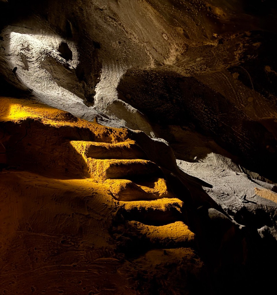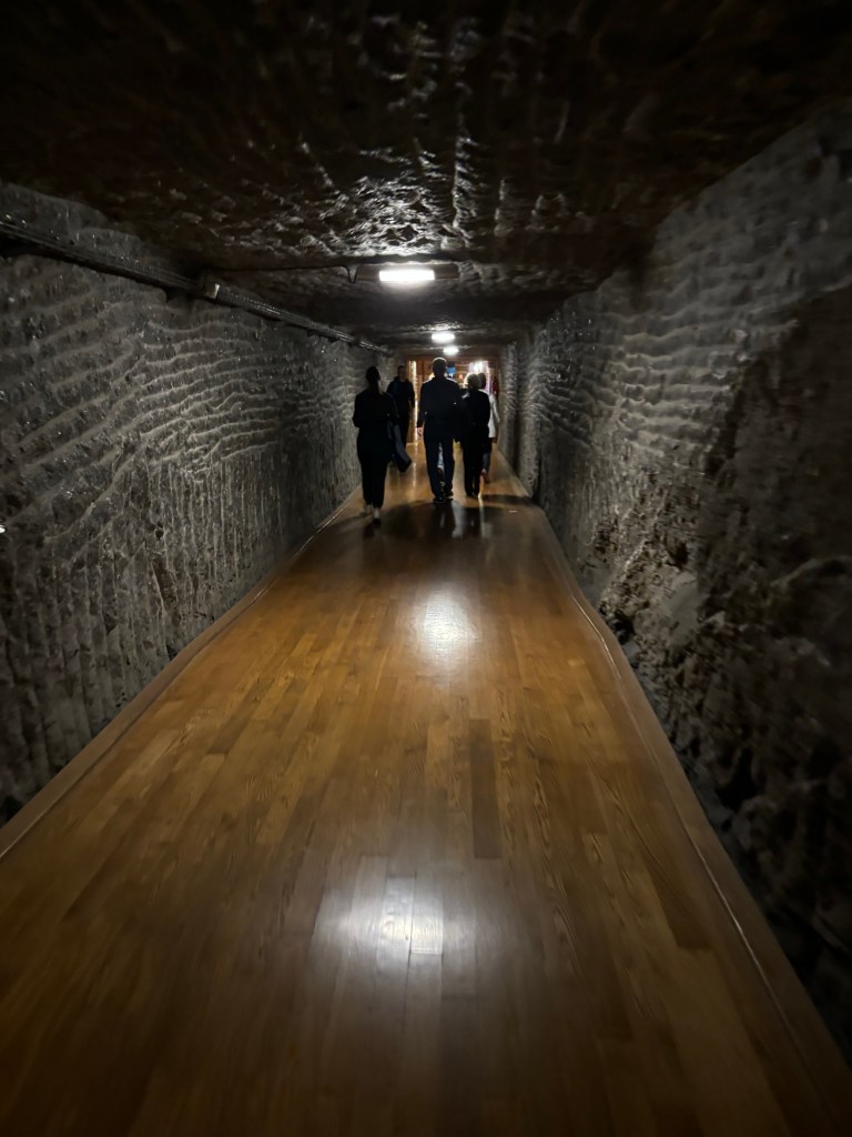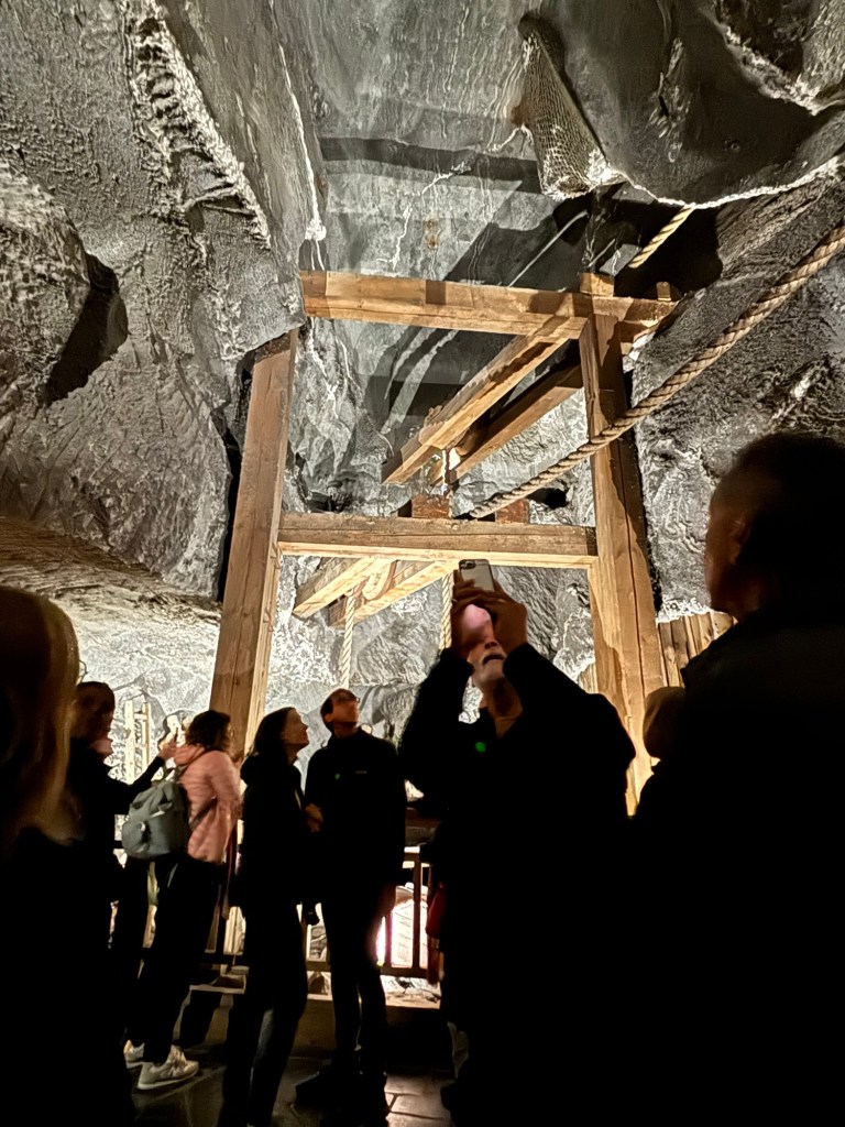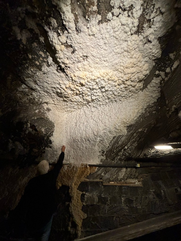 The gray walls and ceiling in all the photos is raw salt!Salt sculpture – carved in 1973Water damage called “Cauliflower” – water in a salt mine is bad.