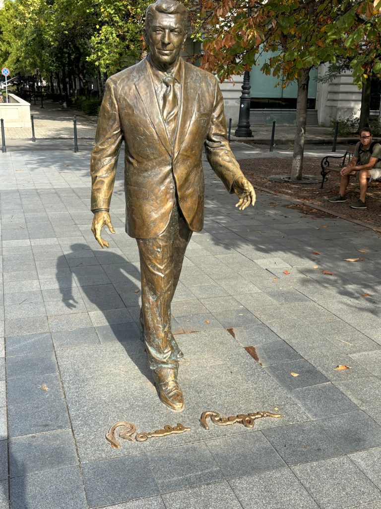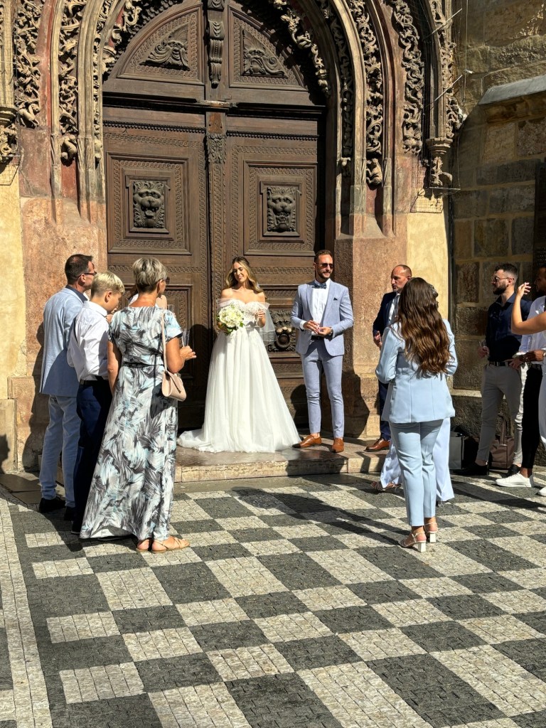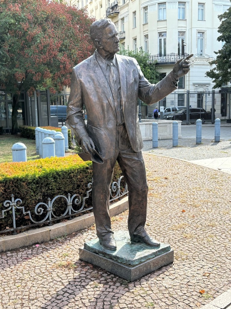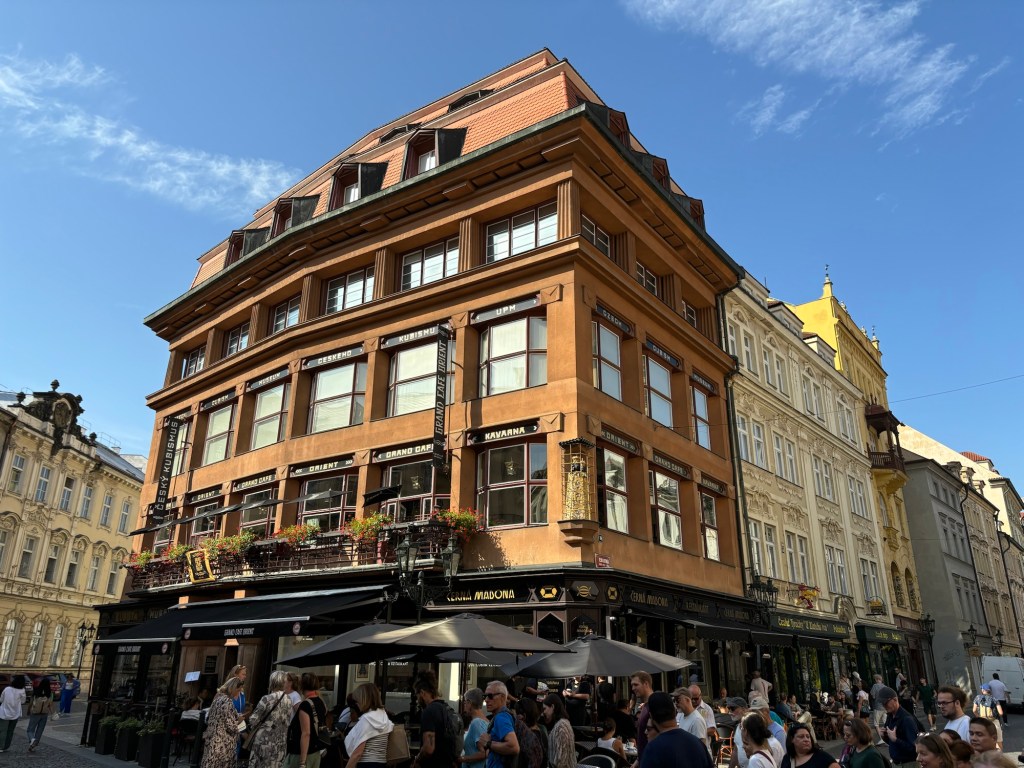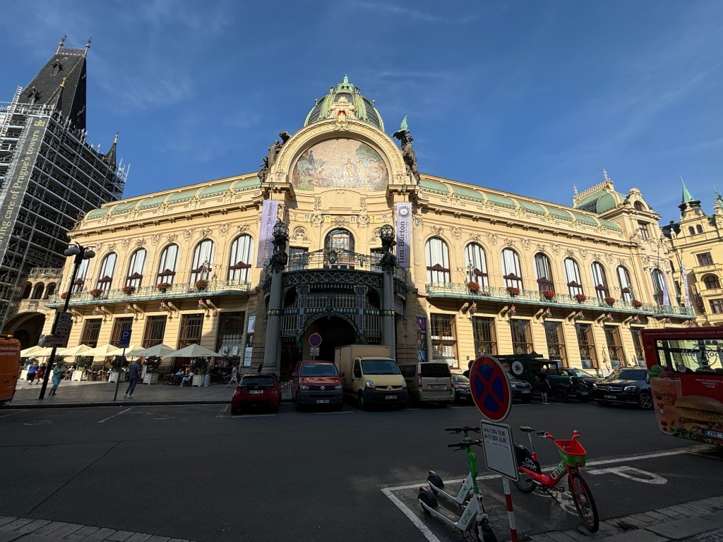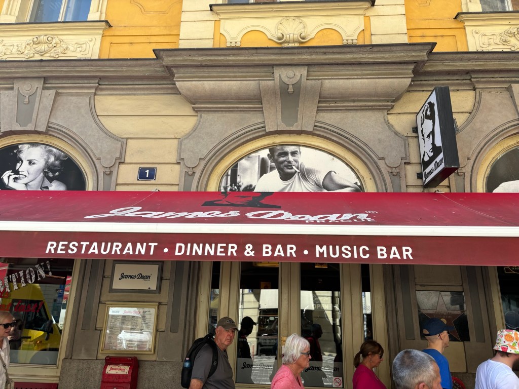 Bronze in memory of W. A. Mozart’s, “Don Giovanni,” that premiered in this theatre October 29, 1787The James Dean Bar and truck out front A building in Cubist style of Pablo Picasso. Lots of angled and squared lines and corners.The Astronomical Clock by the Old Town Square with movements on the hourAnd a wedding a the same church as the clock