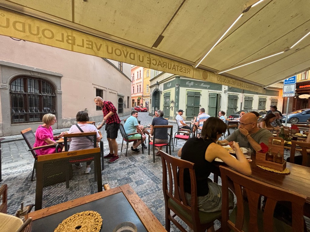 My lunch was fried cheese, tartar and french fries, a common Czech meal. The cheese is usually Brie, Camembert, or Gouda. Our guide said that, “these are BIG pieces of fried cheese, not like the tiny mozzarella sticks Americans get at Wendy’s or Jack in the Box!”
