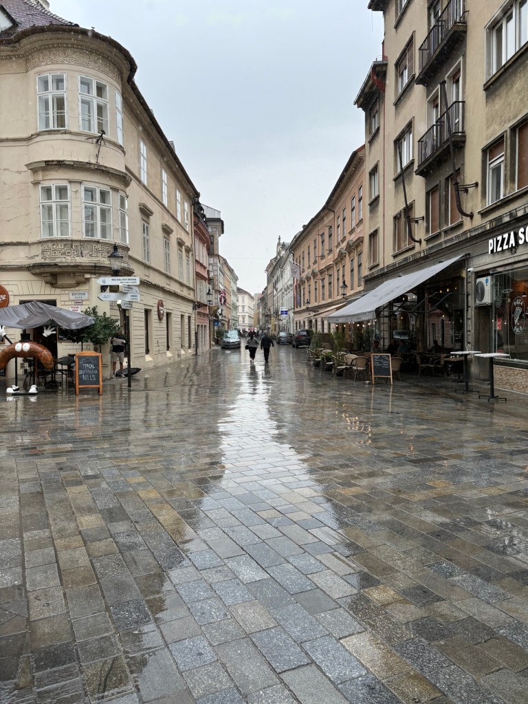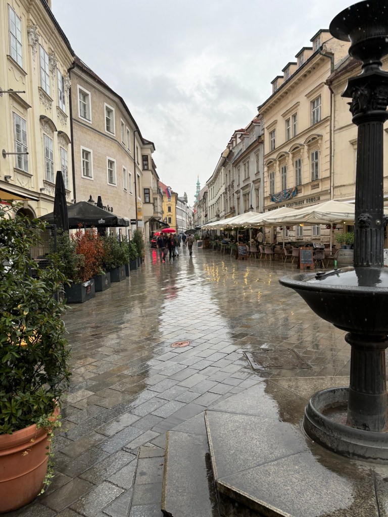 I caught an early 7:00 am train – in the rain – to Bratislava. Actually two trains, and then I spent few hours looking around the capital of Slovakia before heading on to Budapest.