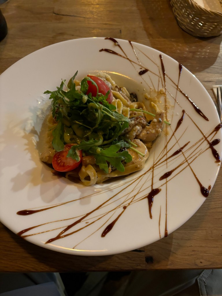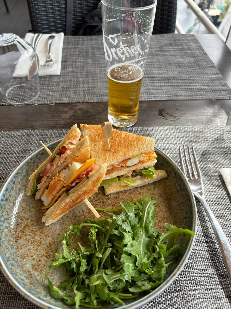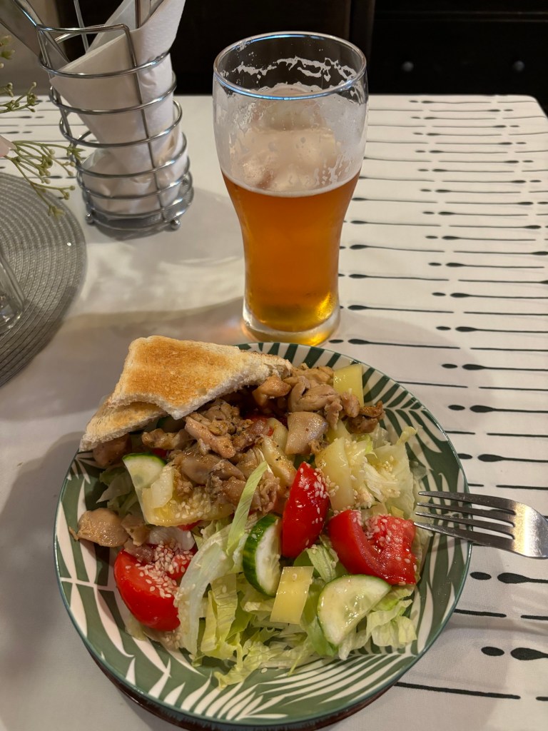 I also had a nice lunch downtown. I decided to add some health food to my lunch today – a nice salad with a bit of chicken. Then to make sure I was hitting multiple major food groups, I added some hops and grains in the form of a local Slovak beer, Zlatý Bažant, or Golden Pheasant beer.