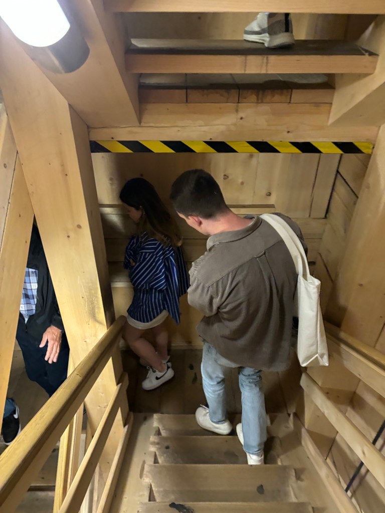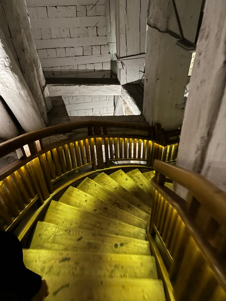 The 446 foot tall South Tower has 343 steps! All in a tiny, winding, spiral stone staircase. Barely enough space to let someone pass if you both squish against the walls.