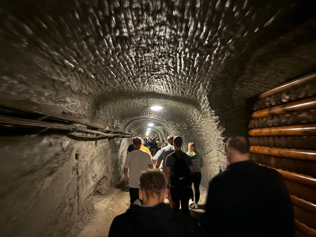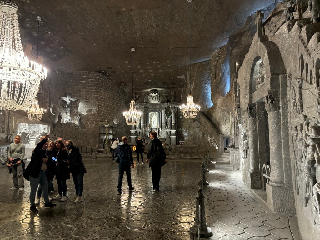 A dreary overcast day – perfect for some time underground! So I went to the Wieliczka Salt Mine for a tour. The van picked me up at 10:00 am, and then seven additional folks (all American!). After a 30 minute ride we arrived at the mine.