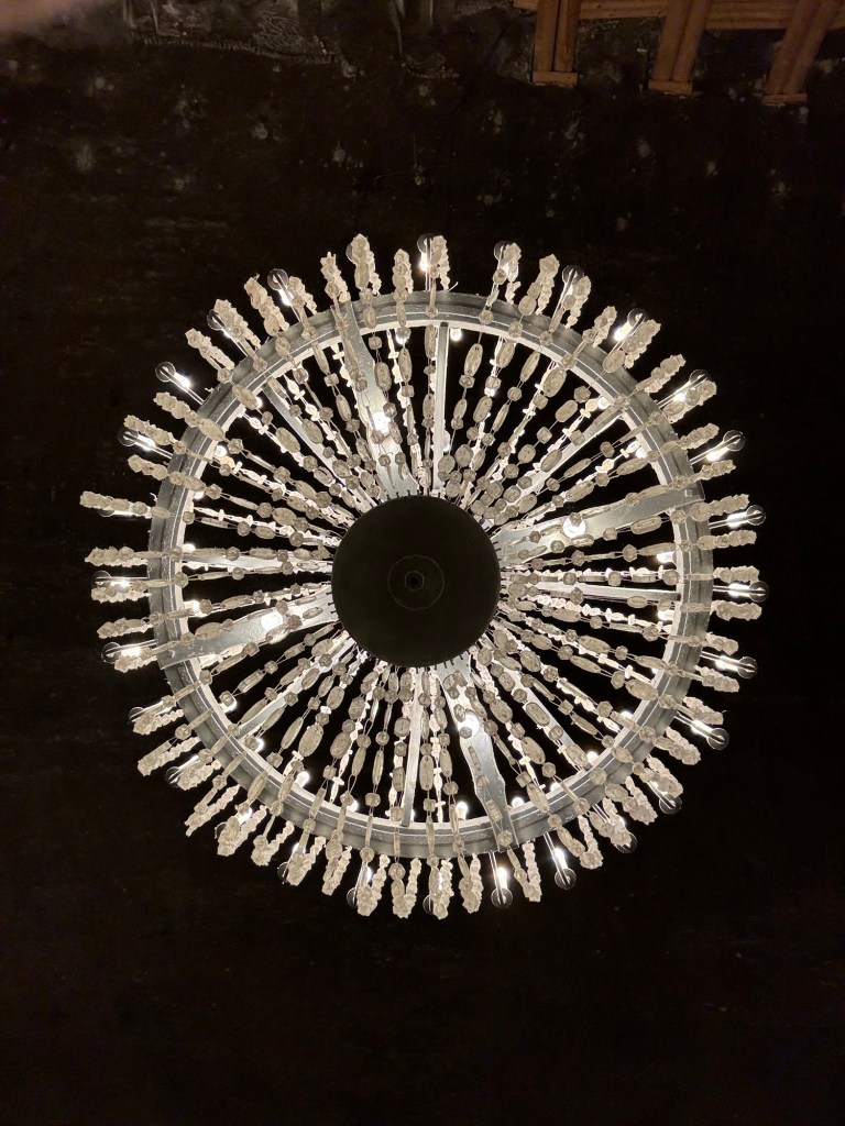Took 67 years for all the carvings in the chapel.The Last Supper sculpture, made by a miner, has a lot of visual depth, but most of it is close to the surface! What an amazing talent!The large chandelier from below