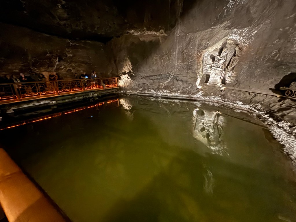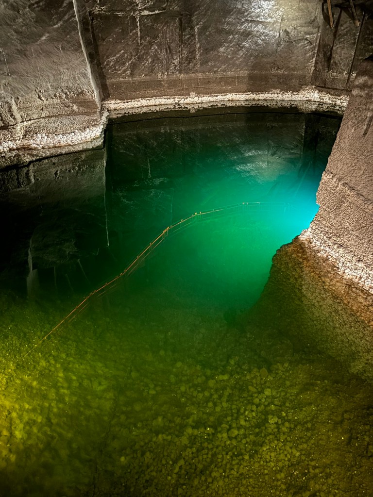 The lake on 2nd level, over 300 feet down, is super saturated with salt many times more salty than sea water and it does not damage the salt like regular water does.